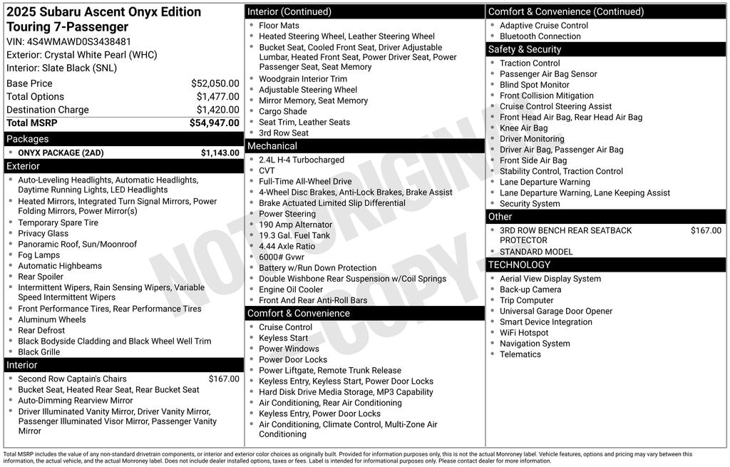 New 2025 SubaruAscent Onyx Edition Touring 7-Passenger